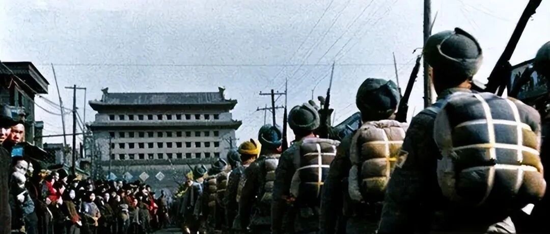 而身背行李包的解放军迈着整齐的步伐跨进北平巍峨的城门时也是同样令人难以忘怀的一幕。他们虽然背负着沉重的行李,但他们的步伐仍然坚定而整齐划一,展现了出色的纪律和意志力。市民们看着他们进城,心中充满了敬意和感激之情。