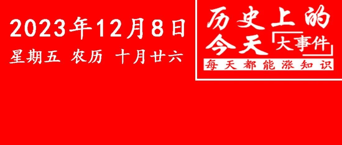 本内容发布在历史时间网网,12月8日 历史上的今天,历史上的今天大事件是一篇由创作的发布的历史文章,最新最全的历史内容数据信息平台,本站支持发布收藏转发分享海报,更多请登录历史时间网网。