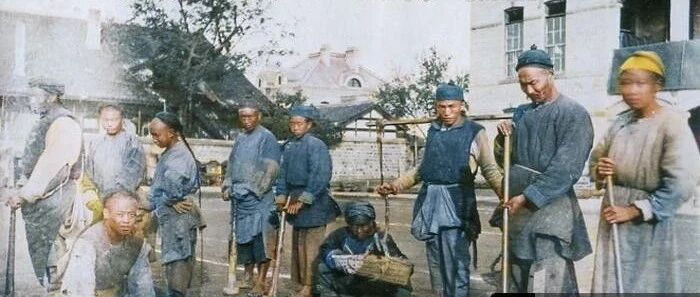 清末彩色老照片:衙役抬县太爷登山;巡抚带着妻妾登泰山;极刑场面;官老爷和他的卫队
