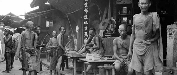 1917年,湖北宜昌,街頭理發攤點。甘博/攝。